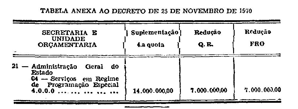 Publicado na Casa Civil, aos 25 de novembro de 1970