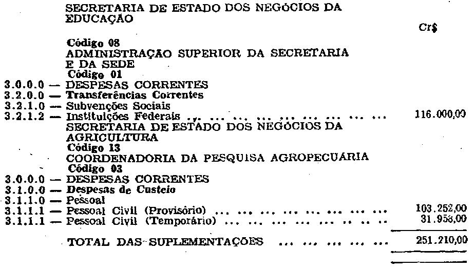 Cr$ 251.210,00 (duzentos e cinquenta e um mil, duzentos e dez