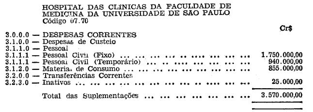Altera o Orçamento Vigente do Hospital das Clínicas da Faculdade de Medicina da Universidade de São Paulo