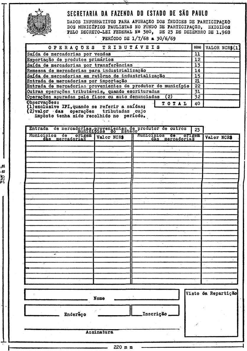 Pelo sistema instituido no referido Ato Complementar, partindo-se de dados concretos de arrecadação fornecidos,