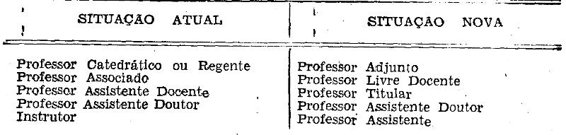 Artigo 4.º - A corrrespondência entre a carreira docente prevista nêste Regimento Geral e a anterior é a seguinte: