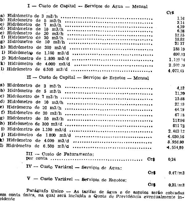 Considerando a estrutura tarifária, constante do Regulamento aprovado pelo Decreto n.º 52.764, de 29-6-1971.