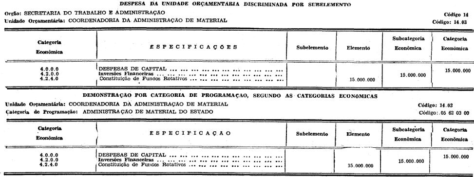 Orçamentária da Despesa do Estado, estabelecida no Anexo