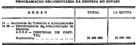 crédito especial de Cr$ 15.000.000,00, junto a Coordenadoria de