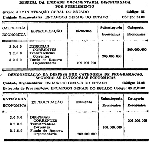 Orçamentária da Despesa do Estado estabelecida no Anexo