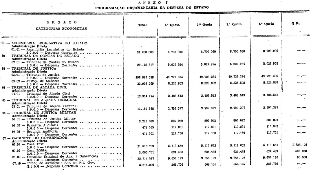 1 - Discriminação da Despesa por Categoria Econômica, a nível de subelemento;