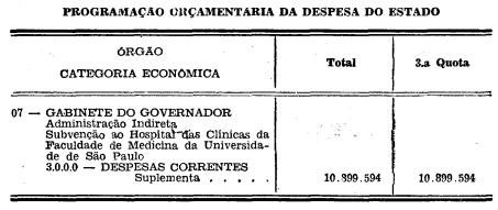 cruzeiros ) tem por escopo subvencionar o Hospital das Clinicas da