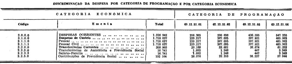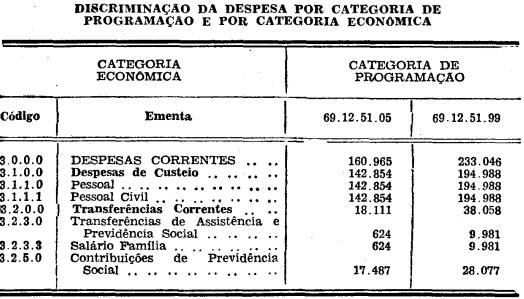 DISCRIMINAÇÃO DA DESPESA POR CATEGORIA DE PROGRAMAÇÃO E POR CATEGORIA ECONÔMICA