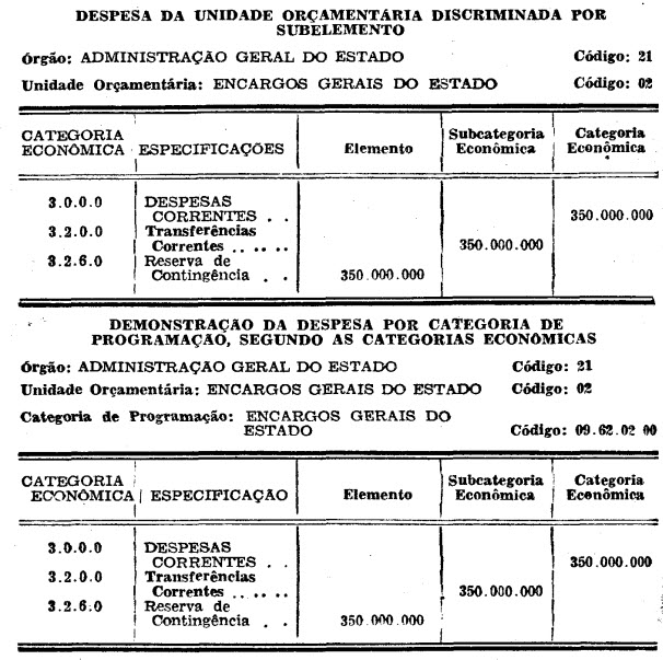 Orçamentária da Despesa do Estado estabelecida no Anexo I, de