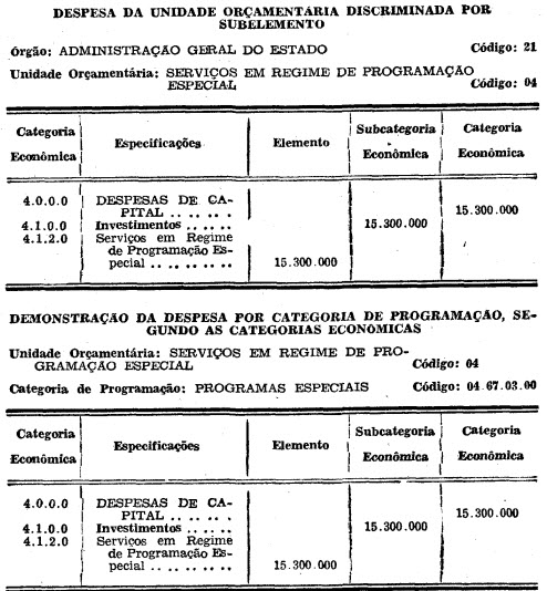Orçamentária da Despesa do Estado estabelecida pelo Anexo