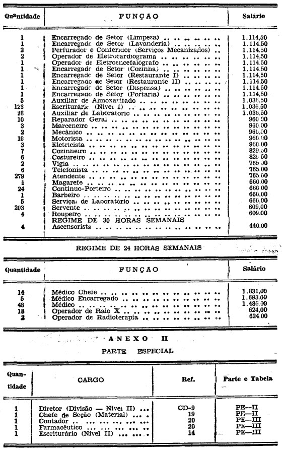 comporão a Parte Especial do Quadro de Pessoal do Hospital das