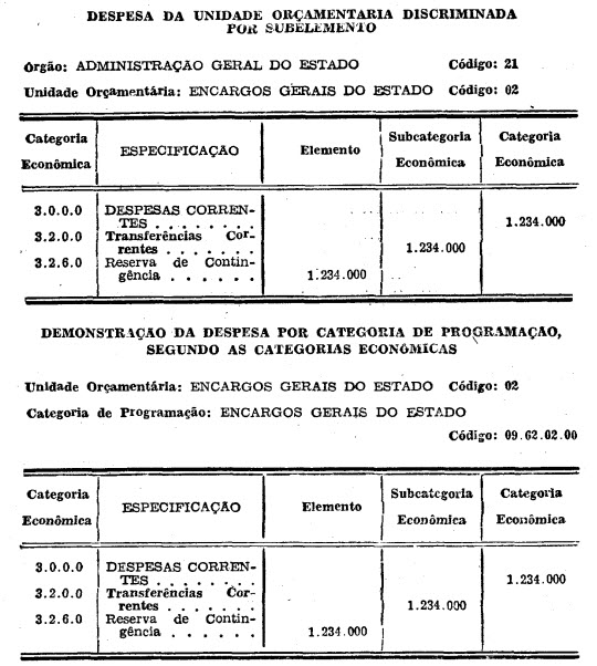 O presente crédito suplementar no valor de Cr$ 1.234.000,00 (um