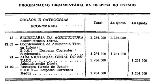 milhão, duzentos e trinta e quatro mil cruzeiros), ora aberto à Secretaria da Agricultura, visa prover de recursos