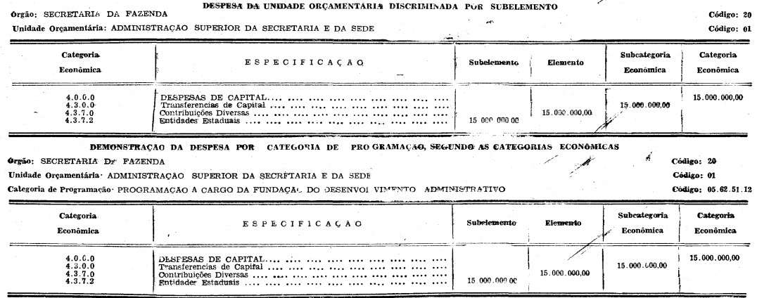 Leia-se: Cr$ 15.000.000,00 da Fundação do Desenvolvimento Administrativo.