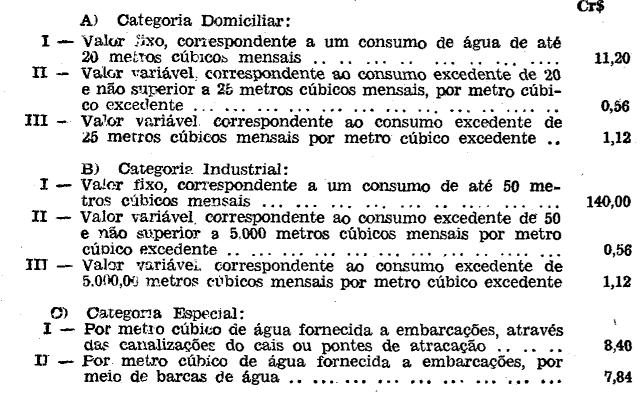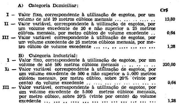 Artigo 1.° - As tarifas dos serviços de água e esgotos fixadas