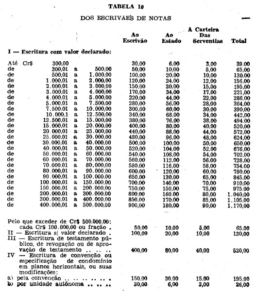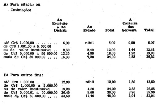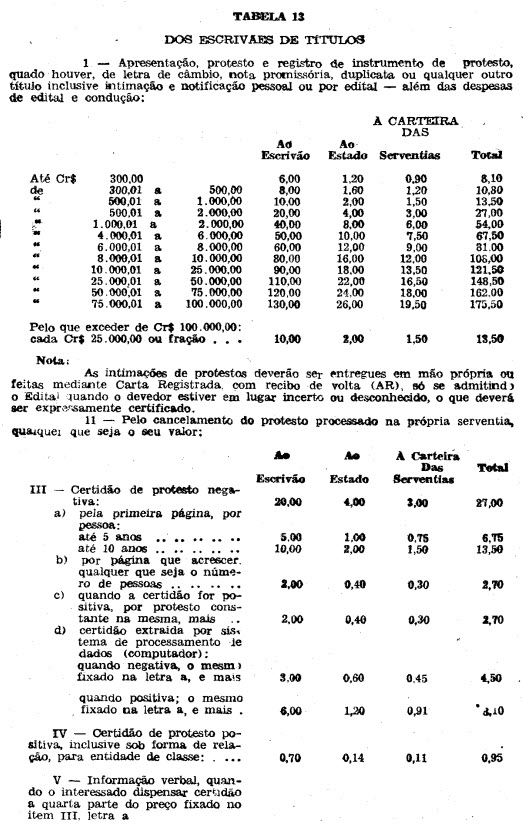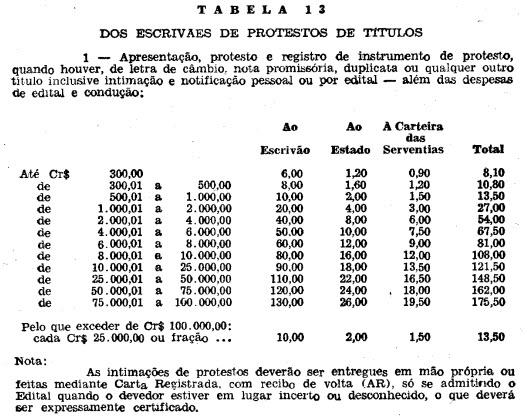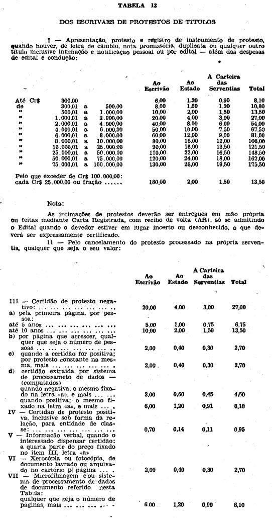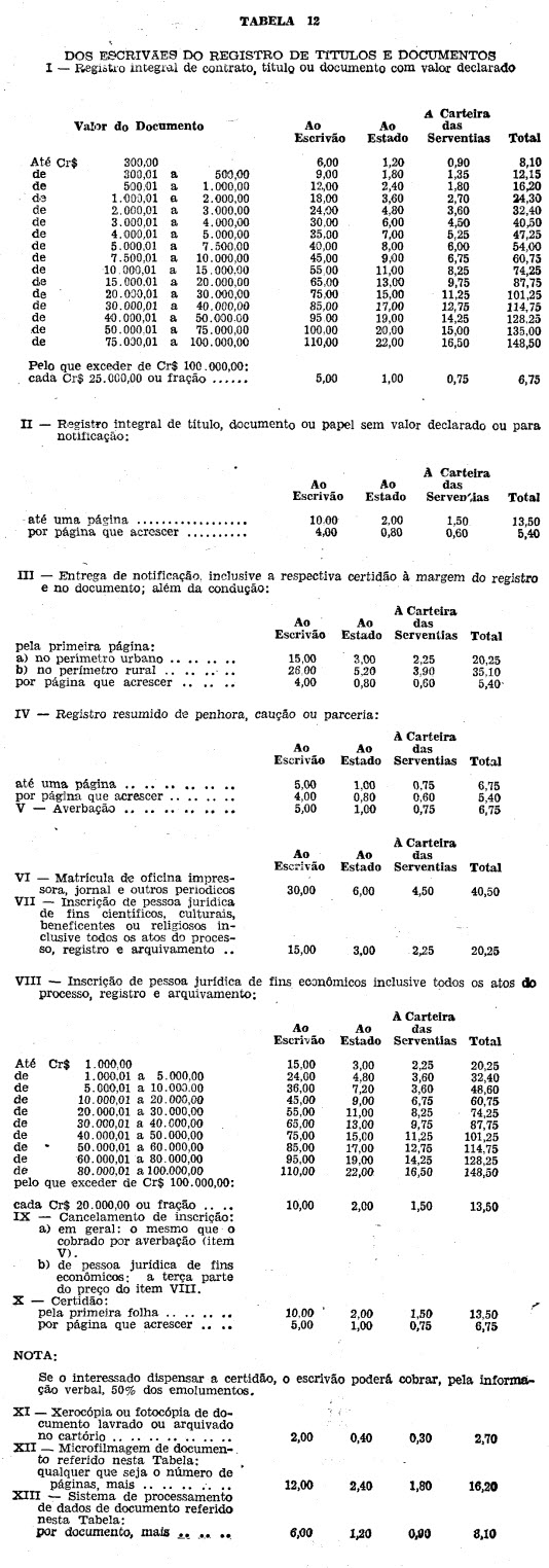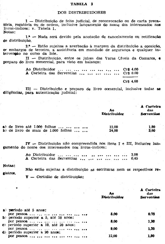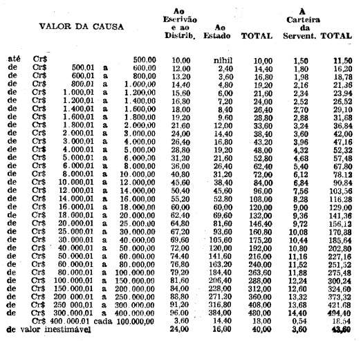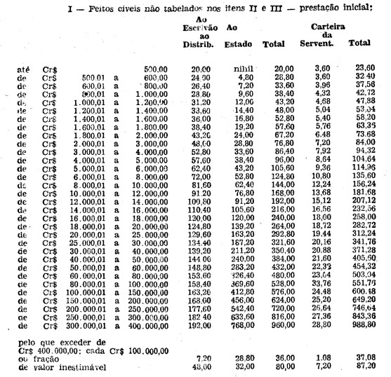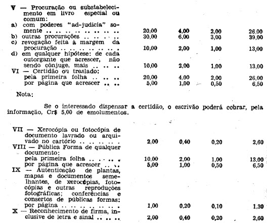1ª - Os emolumentos mínimo do Oficial, no caso da letra "a", serão de Cr$ 80,00.
