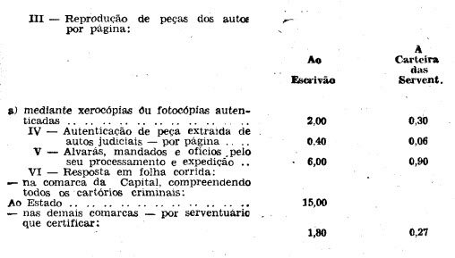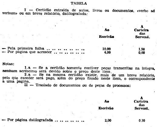 2ª - Se o ato for praticado em serventia oficializada ou em Secretaria de qualquer dos Tribunais, esta sujeito aos mesmos preços, arrecadando o Estado os respectivos emolumentos.