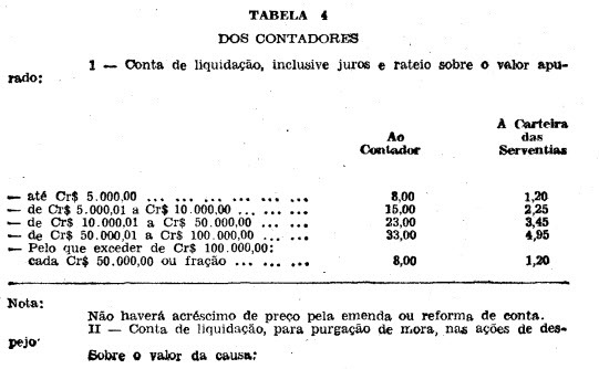 1ª - O preço inclui todos os cálculos necessários à formação do ativo e do passivo, não estando sujeito a acréscimo, ainda que no mesmo processo haja mais de uma sucessão.