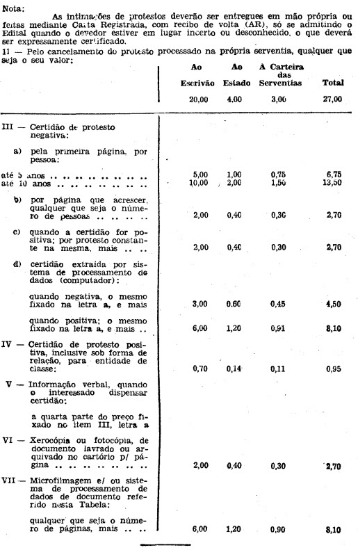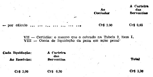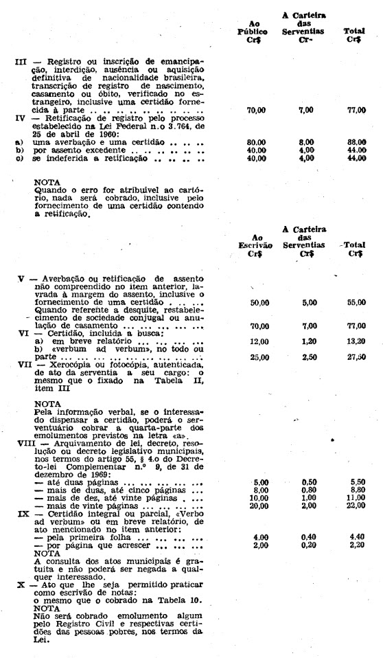 III - Certidão: o mesmo que o cobrado na Tabela 2, item I.