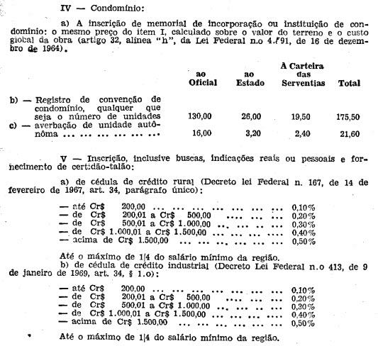 2ª - No caso de registro de cédula industrial, cinquenta por cento dos emolumentos caberão ao oficial do registro de imóveis, devendo os restantes cinquenta por cento ser recolhidos pelo serventuário ao Banco do Brasil, a crédito do Tesouro Nacional (Decreto-lei Federal nº 413, de 9 de janeiro de 1969, (artigo 34, § 2º).