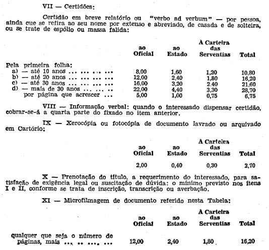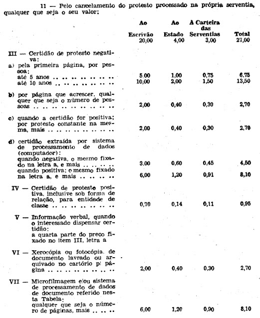 II - Certidão: o mesmo que o cobrado na Tabela 2, item I.