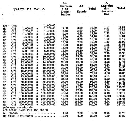 11ª - A contribuição devida à Carteira de Previdência das Serventias não Oficializadas da Justiça do Estado, no caso do item 9º, será no mínimo, de Cr$ 1,00.