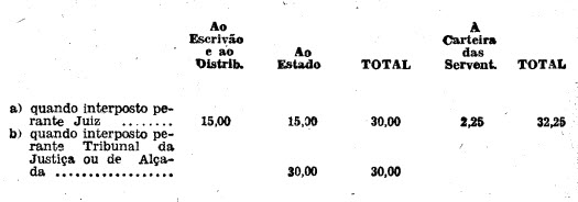 VII - Correição parcial: o mesmo que o tabelado no item VI, letra "a", sendo o pagamento total feito em primeira instância.