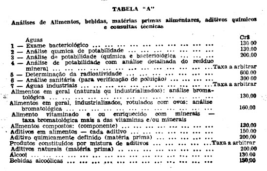 Tabelas anexas terão suas taxas arbitradas pelo Diretor Geral do