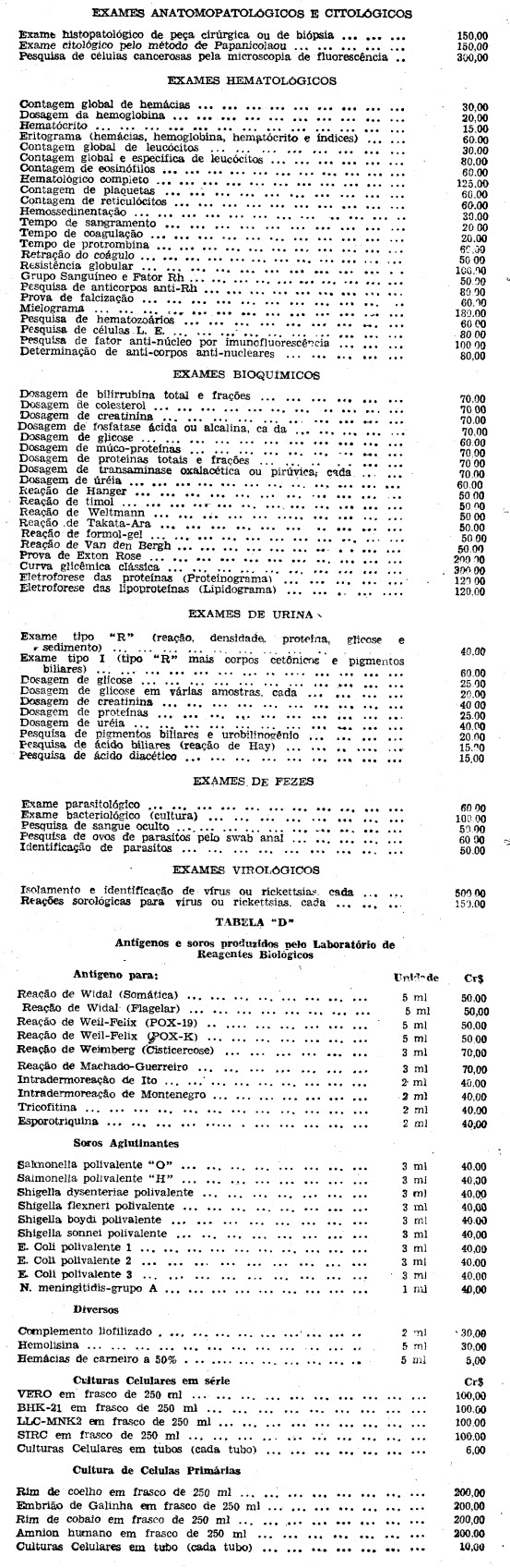 Fixa novos preços para os serviços a cargo do Instituto Adolfo Lutz da Secretaria de Estado da Saúde