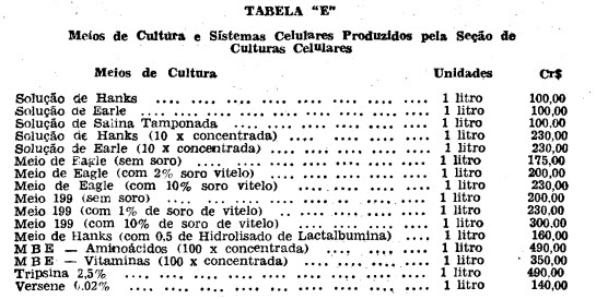 Meios de Cultura e Sistemas Celulares Produzidos pela Seção de Culturas Celulares