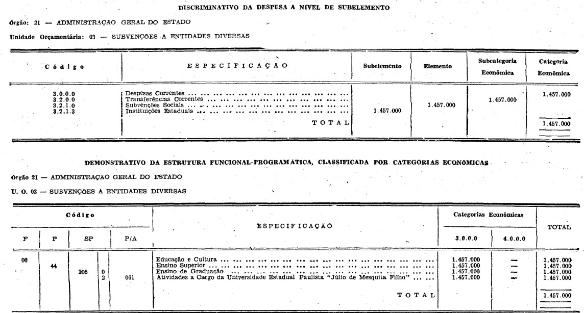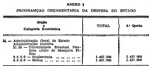 Orçamentária da Despesa do Estado estabelecida pelo Anexo