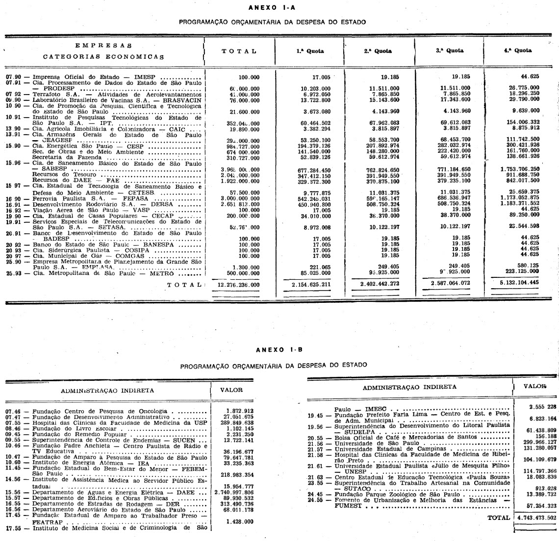 em Anexo I - Programação Orçamentária da Despesa do Estado