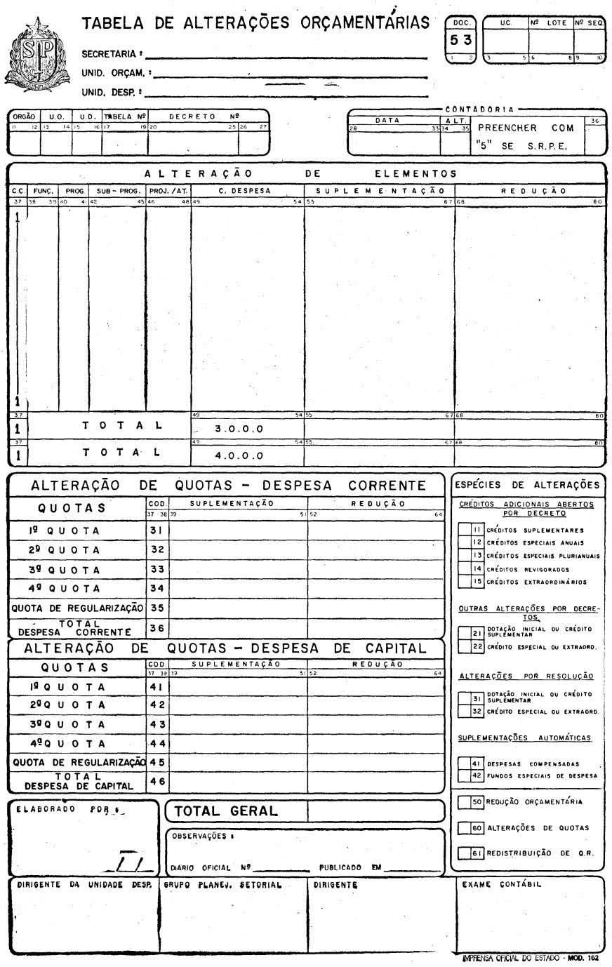 Tabeias Explicativas deverdo ser submetidos à Secretaria de