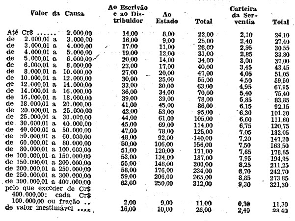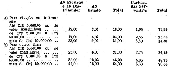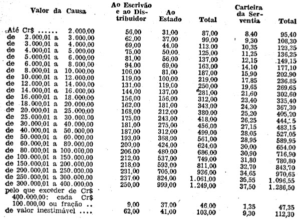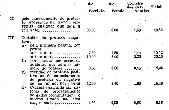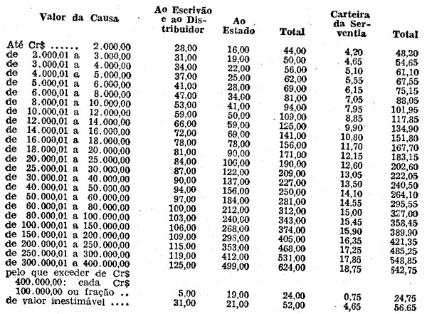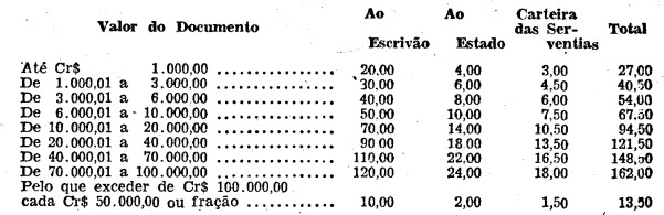 — até Cr$ 5.000,00 . . . . . . . . . . . . . . . . . . . . . . . . . . . . . . . . . . . . . . . . . . 15,00