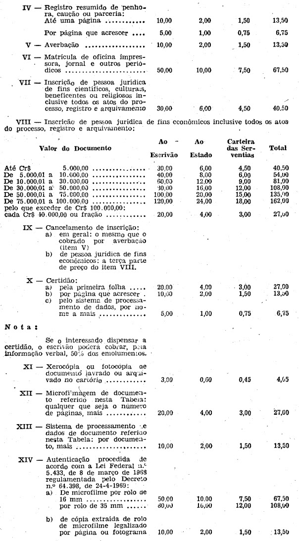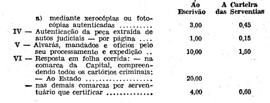 2.ª — Se o ato for praticado em serventia oficializada ou em Secretaria de qualquer dos Tribunais, está sujeito aos mesmos preços, arrecadando o Estado os respectivos emolumentos.