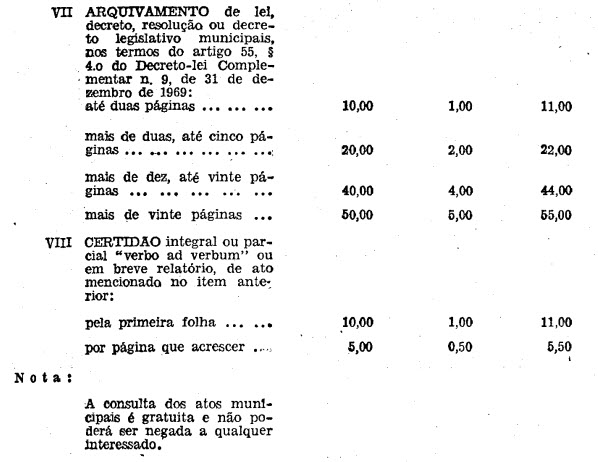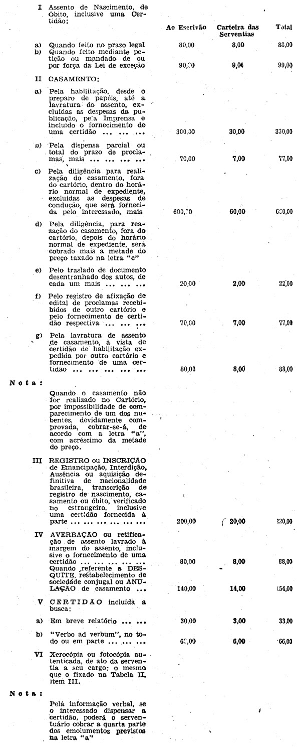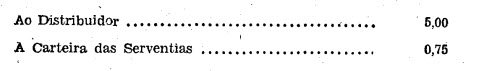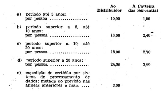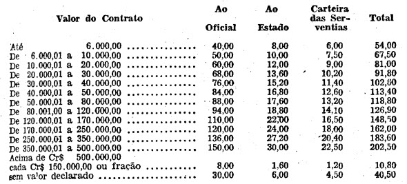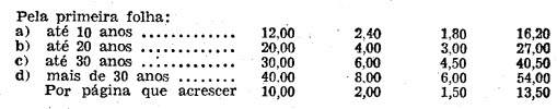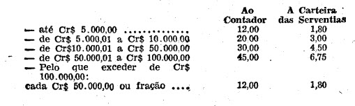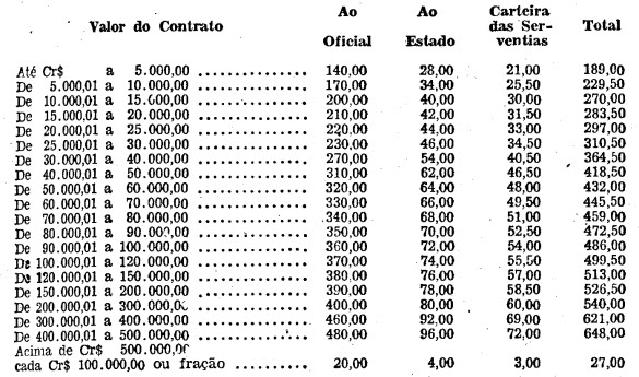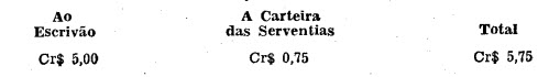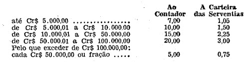 — Emolumentos máximo . . . . . . . . . . . . . . . . . . . . . . . . . . . . . . . . . . . . . . . . . . . . . . . . . Cr$ 50,00