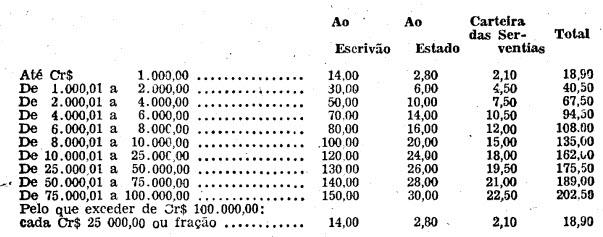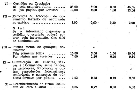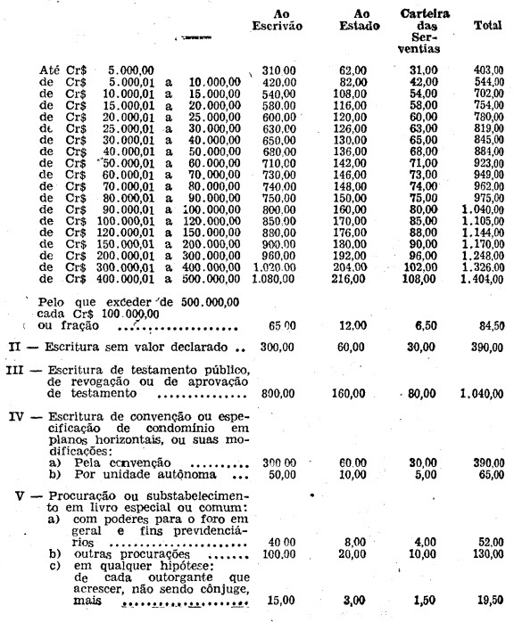— por Cr$ 100.000,00 ou fração . . . . . . . . . . . . . . . . . . . . . . . . . . . . . . . . . . . . . . . . . . até Cr$ 10,00