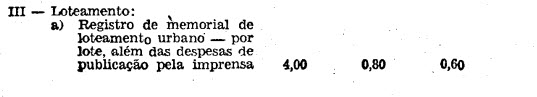 Onde se lê: a) Registro de memorial ... de publicação pela imprensa 4,00 - 0,80 - 0,60