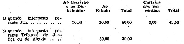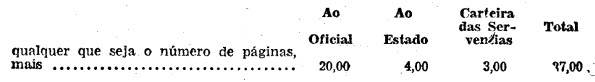 — até Cr$ 5.000,00 . . . . . . . . . . . . . . . . . . . . . . . . . . . . . . . . . . . . . . . . . . 20,00