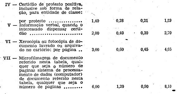 III — Certidão: o mesmo que o cobrador na Tabela 2, item I.