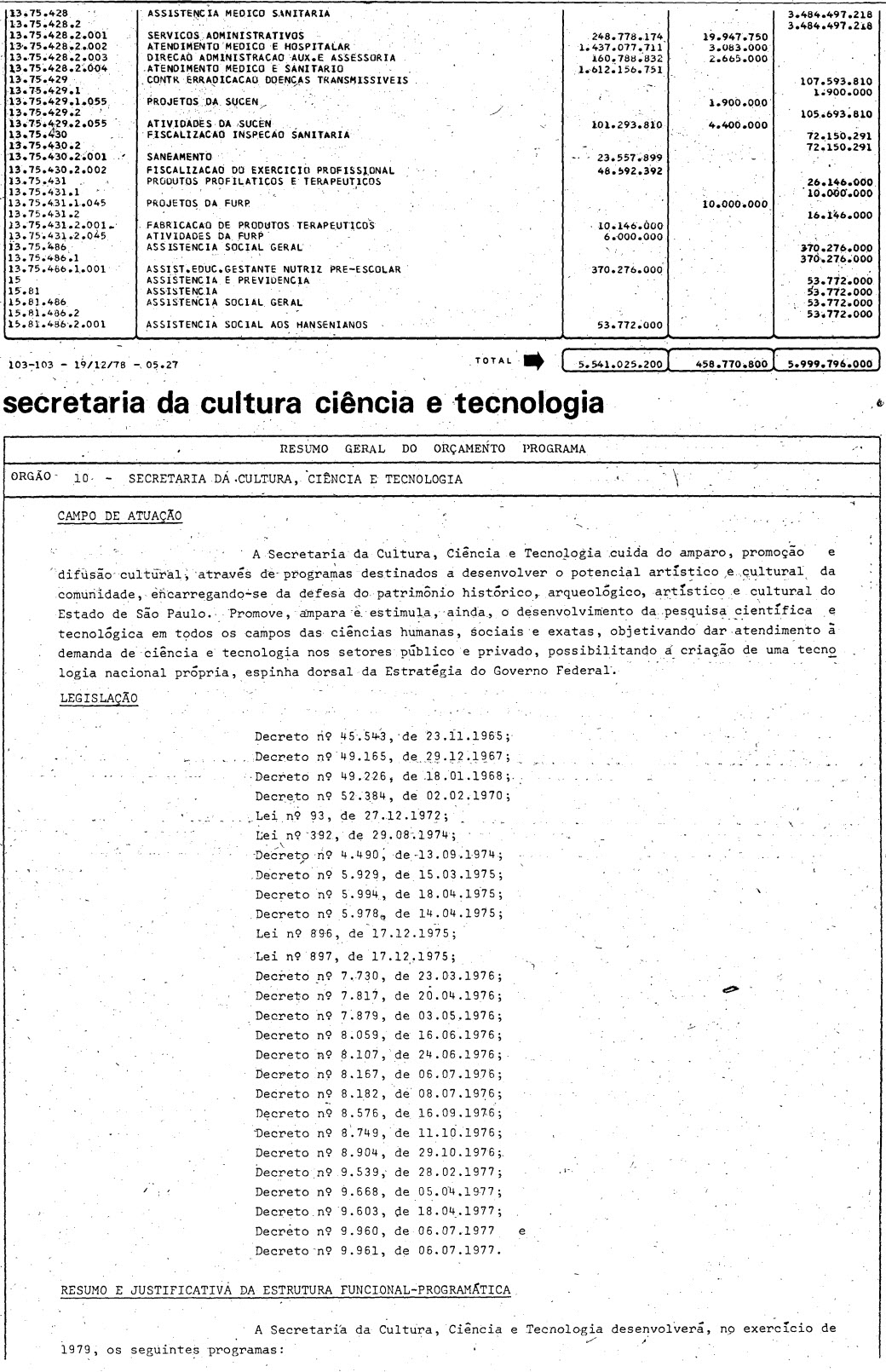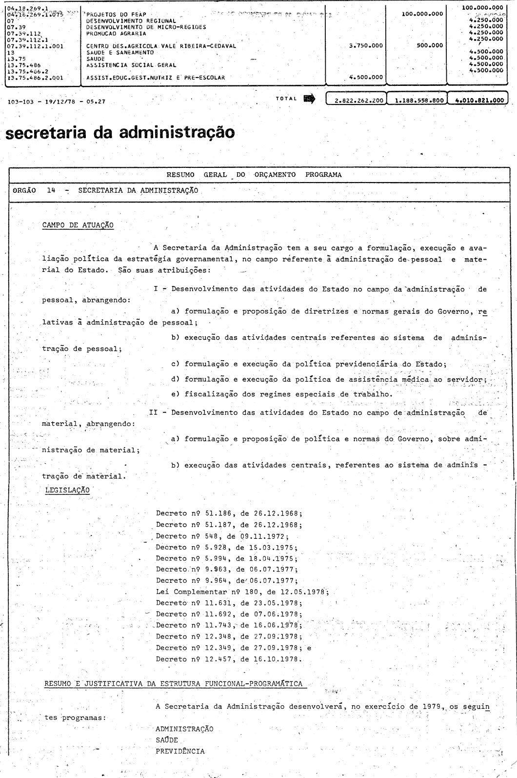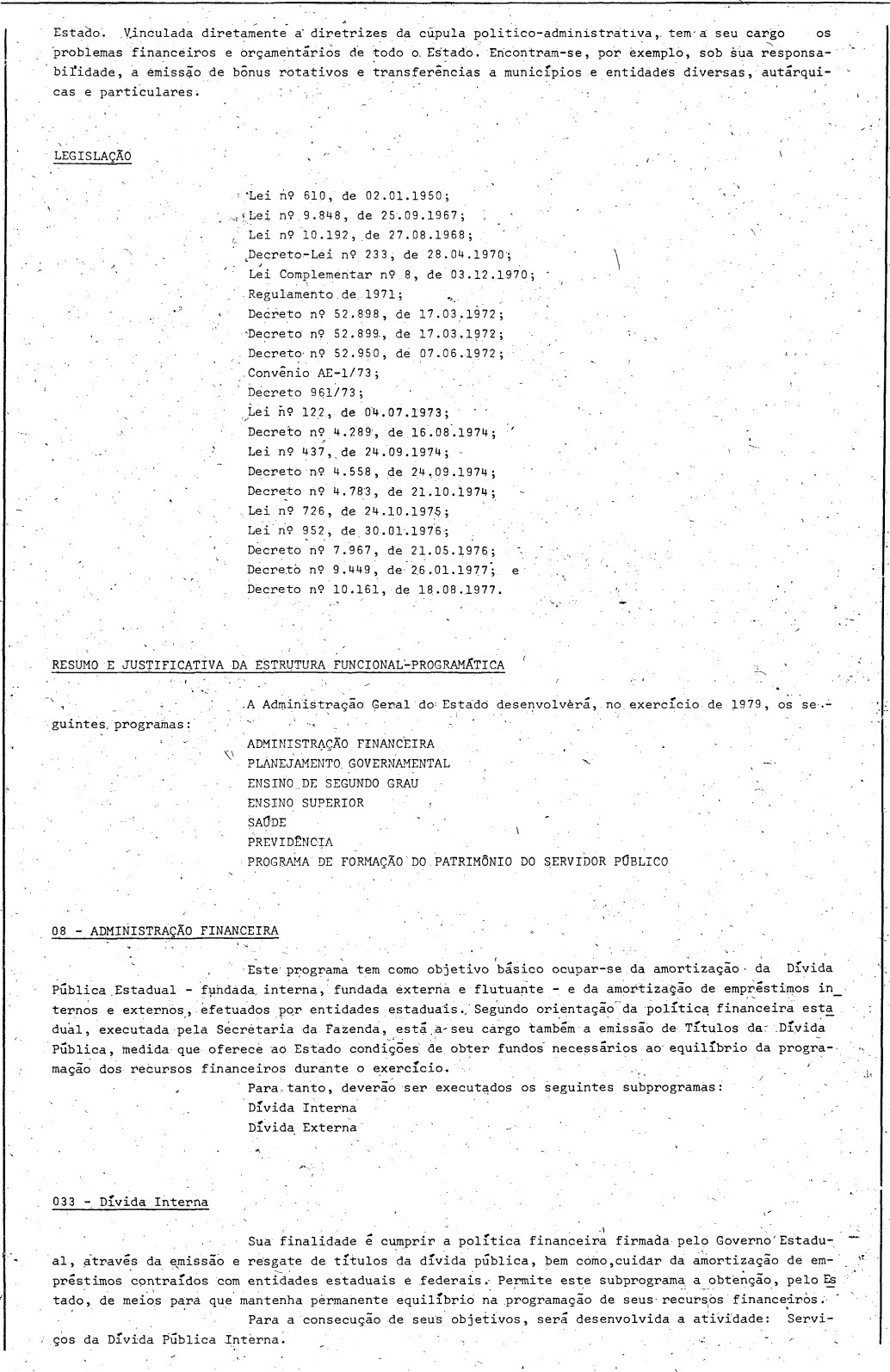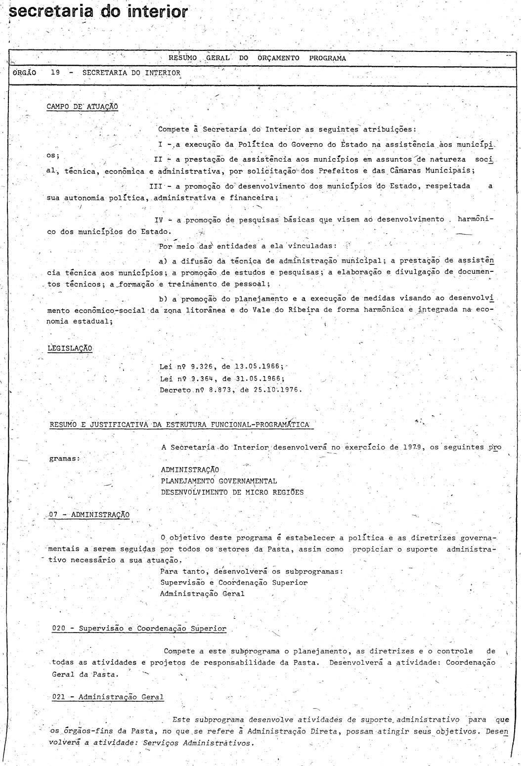 Orçamento-Programa Anual do Estado, para o exercício de 1979, de