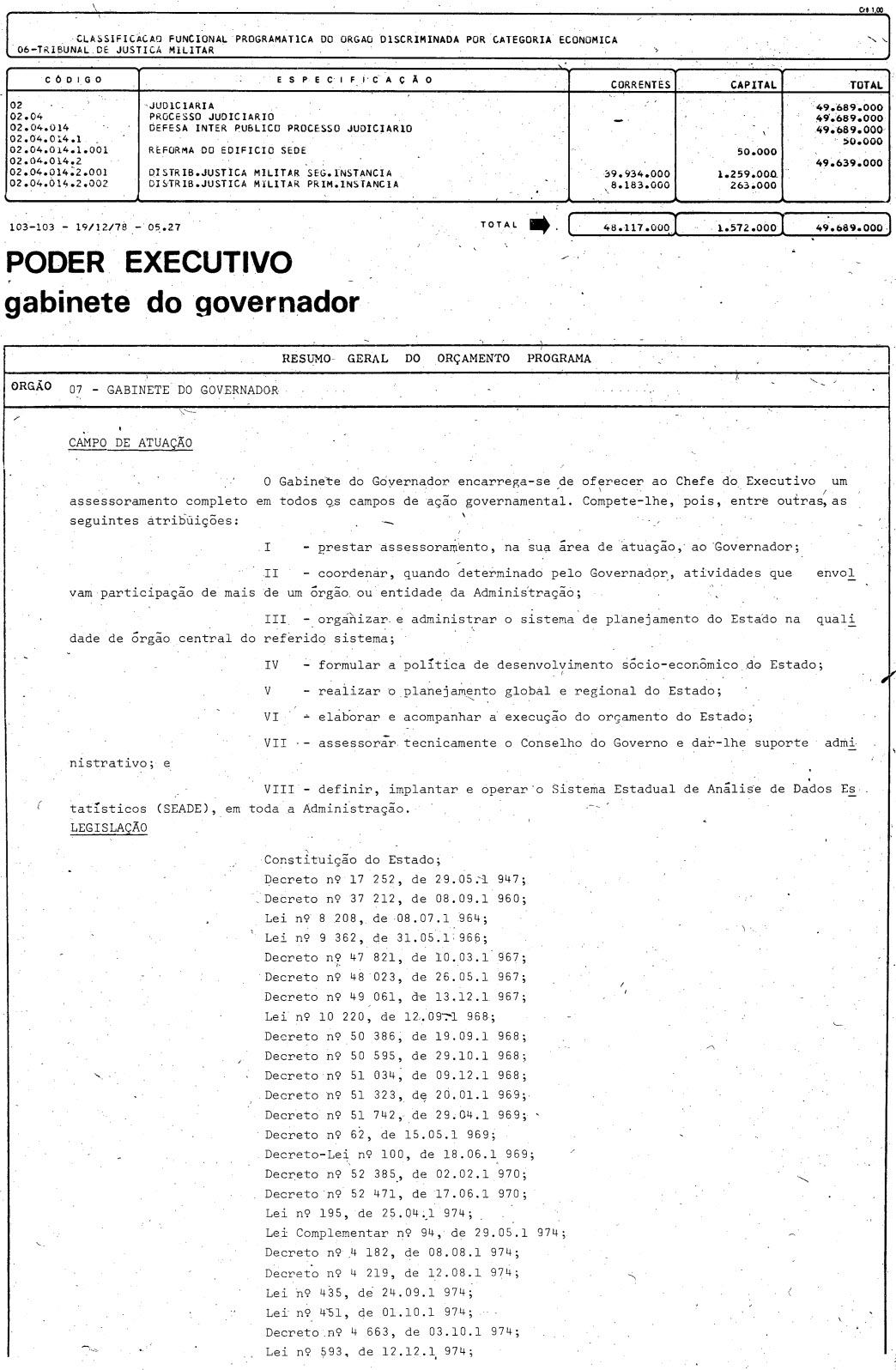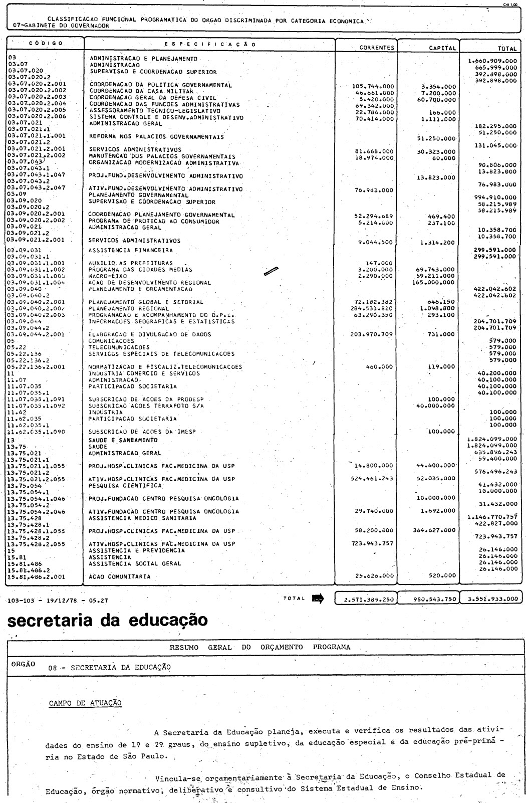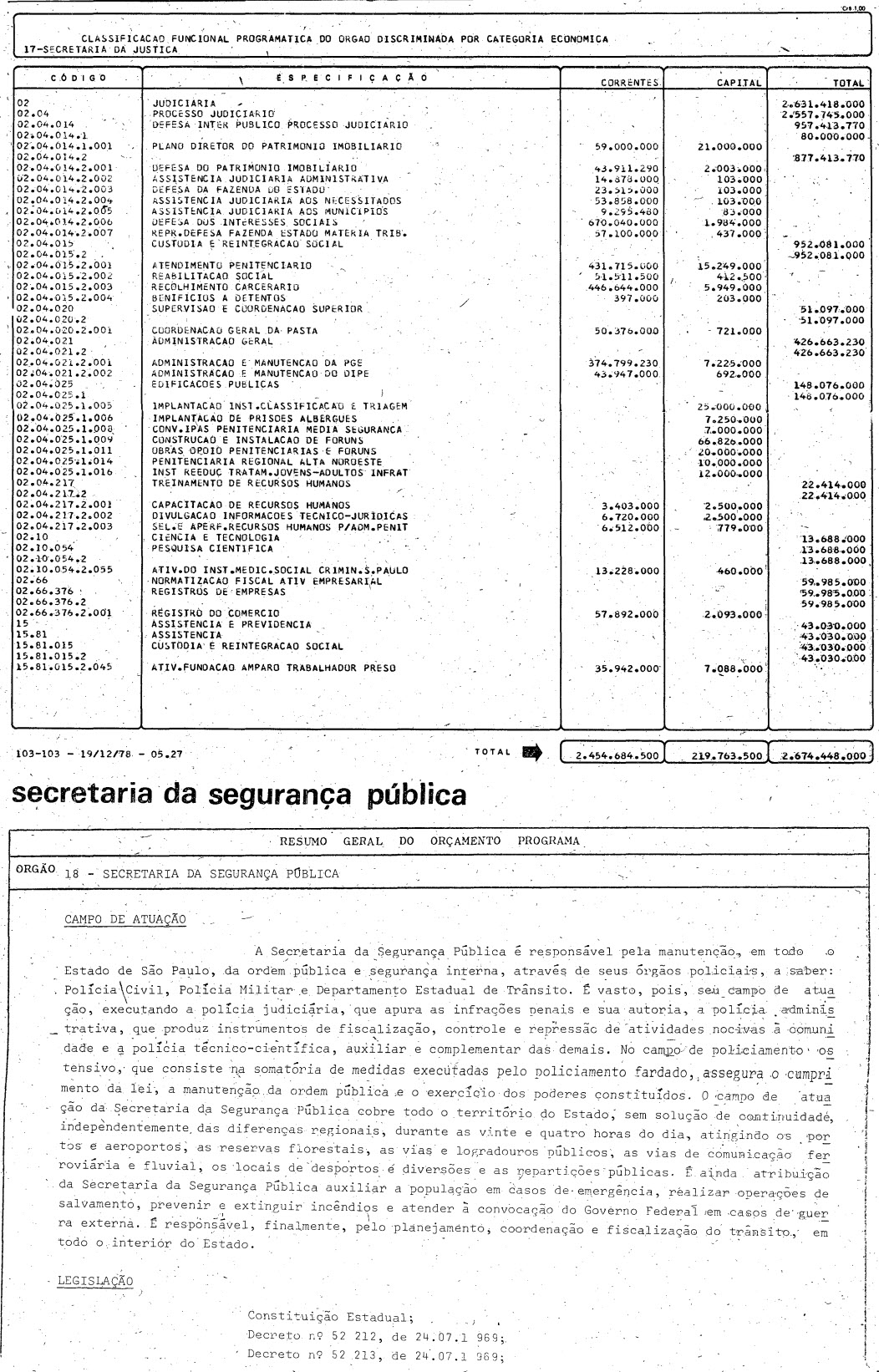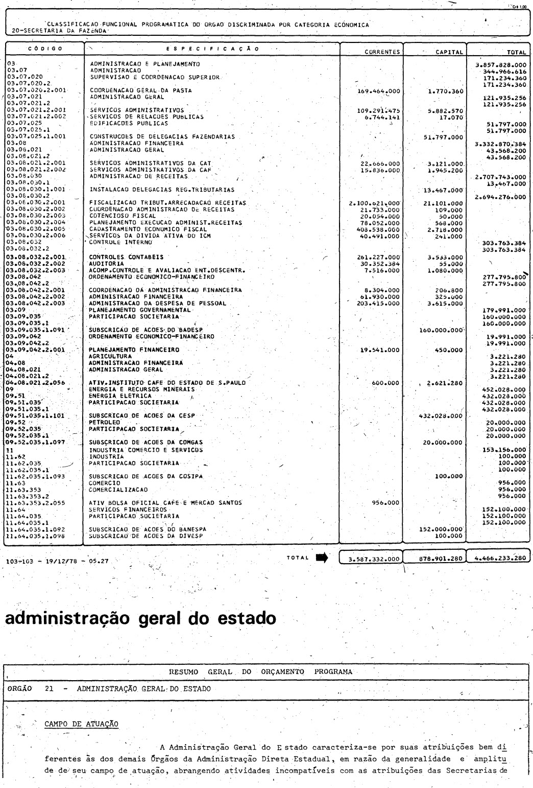 Orçamento-Programa Anual do Estado, para o exercício de 1979, de