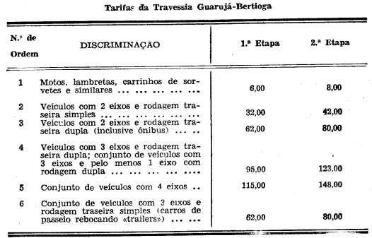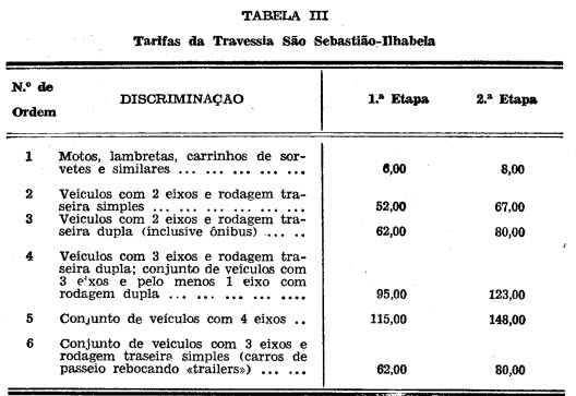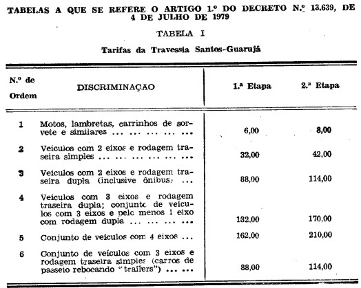 integrante deste decreto, as tarifas para os serviços de