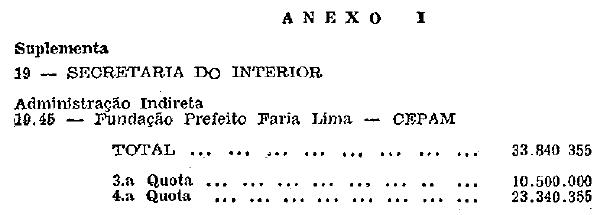 Considerando a necessidade de reforçar as dotações orçamentárias da Secretaria do Interior, a fim de possibilitar cobertura de deficit em despesas de pessoal e reflexos da fundação Prefeito Faria Lima - Cepam, decorrentesde dessídio coletivo,