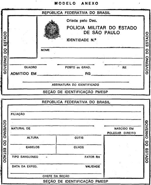 Institui cédula de identidade para oficiais e praças da Polícia Militar do Estado
