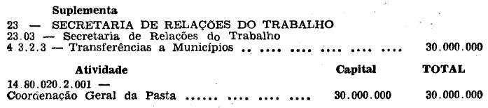 crédito suplementar de Cr$ 30.000.000,00 (trinta milhões
