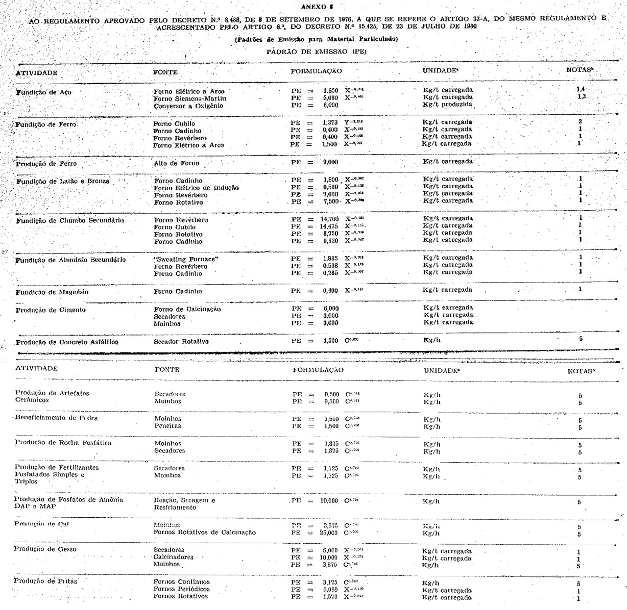 OBS: No cálculo dos Padrões de Emissão os valores obtidos deverão ser considerados até a 3.ª (terceira) casa decimal.