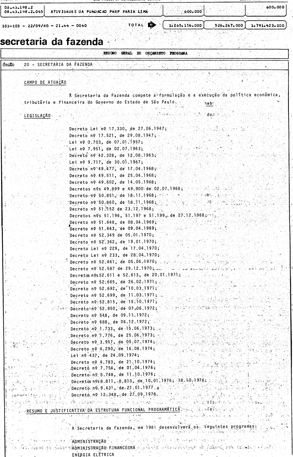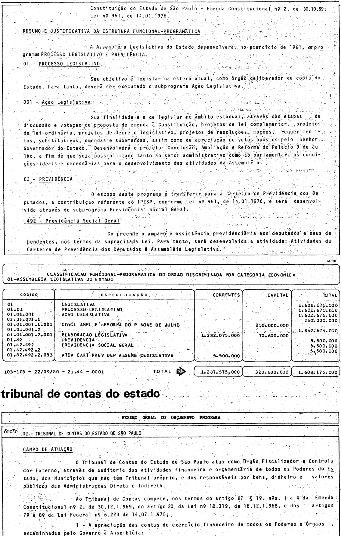 1981, de que trata a Lei n. 2.610, de 15 de dezembro de 1980,