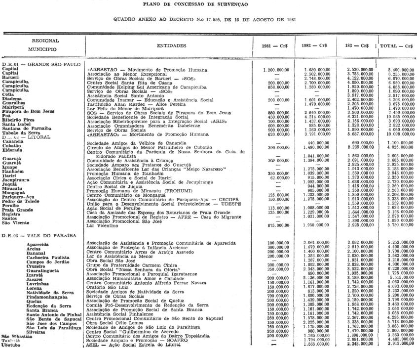 DECRETO N. 17.555, DE 13 DE AGOSTO DE 1981