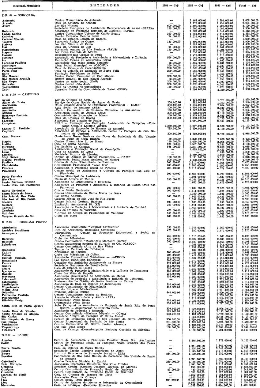 subvenções na importância de Cr$ 53.285.000,00